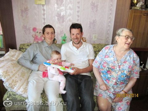 По сегодняшнему поводу я организовала небольшой столик, к нам пришел крестный. Посидели немного и пошли в гости к Настюшкиной прабабушке. Ну и немного фоточек: