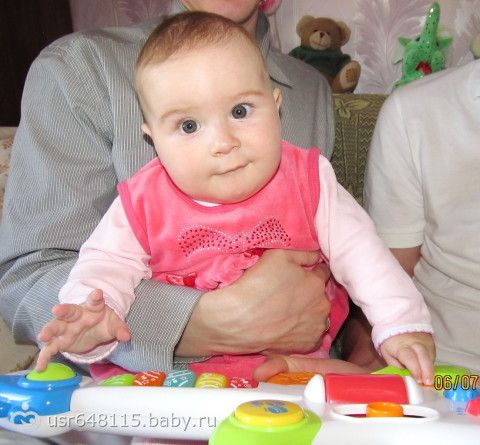 К врачу мы завтра пойдем, узнаем на сколько мы выросли. Из специалистов мы прошли невролога и ортопеда. Ортопед разрешила нам больше не носить шину Кошля (основываясь на нашем хорошем последнем УЗИ), но зарядка обязательна, и после августовского курса массажа на контроль УЗИ и опять к ней. Нервопатолог разрешила нам все прививки, а-то нам педиатр поставила медотвод до 6мес, нервопатолог вообще очень удивилась, сказала, что не видит причин ходить без прививок.