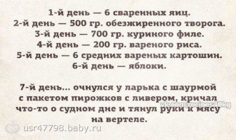 Вот я и всего один раз отсидела как положено все пять недель, без срывов. А вот сейчас сижу, первый раз 4 недели, так как на пятой недели др мужа было, поэтому не до диеты. Сейчас второй раз села, хочу к 10 августа сбросить до 70. Там у нас годовщина свадьбы. Но блин тут узнаю что в конце июля встреча выпускников! Наверное опять придется только 4 недели. Хотя подруга предлагает вариант, что после вечеринки на след день сделать разгрузочный день и дальше продолжать как ни в чем и не бывало:)