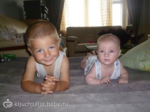 Привет подружки! Были на выходных в деревне у наших родителей и забрали сыночка на две недели. Вместо 4,5 часов ехали 6 часов, пробки пробки пробки. В дороге вели детки себя хорошо. Всё больше и больше убеждаюсь, что сыночек очень любит сестричку, постоянно её целует, обнимает и приносит ей игрушки. А когда Варвара плачет, Богдан погремушку ей приносит и начинает с ней играть. Сегодня первый день, когда я сама с нашими малышами и вроде бы справляюсь. Только 12 часов, а я уже кушать приготовила, сыну кашку сварила. Правда доченька понемногу спит, Богдан бегает и кричит, играется, а Варюшка просыпается. Будем привыкать...