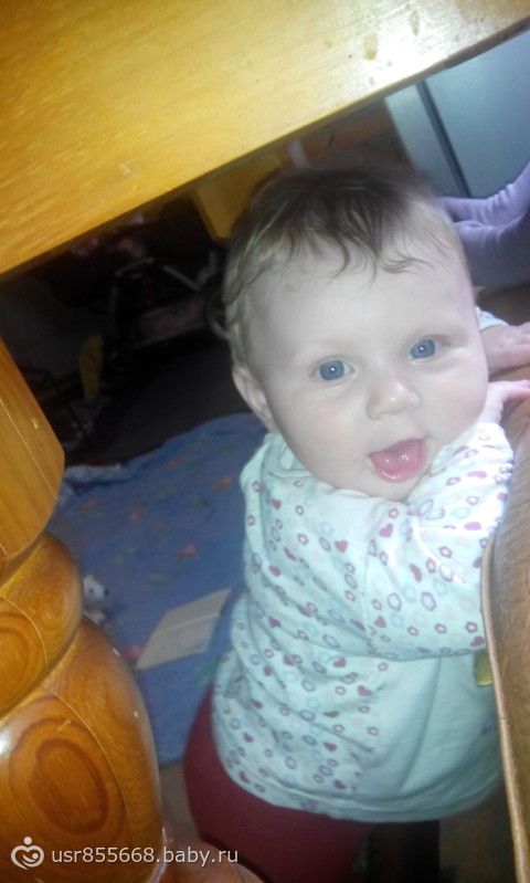 А какой у вас рост? Или может стол не достаточно высокий? Мы в 6мес были71 см.в 7 ещё не мерялись.место до крышки стола ещё есть))) иак станет и хнючет через время чтоб посадили вставать на ноги научилась а садиться назад нет