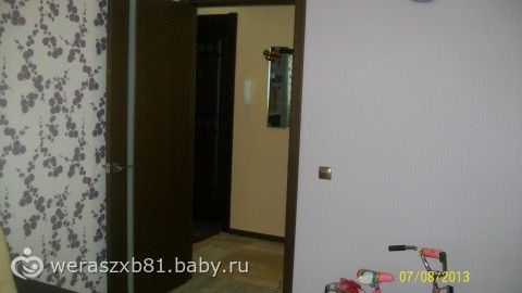 вот уродская дверь, что стоит сейчас. Здесь можно увидеть, что межкомнатные двери белые. И стоит стенка цвета-венге-клен.