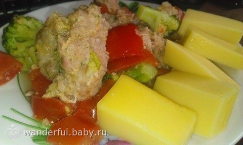 Обед: тушеные в микроволновке брокколи, томат и котлеты (п/ф, что был в морозилке), сыр