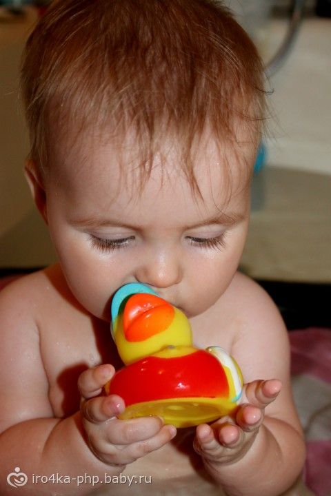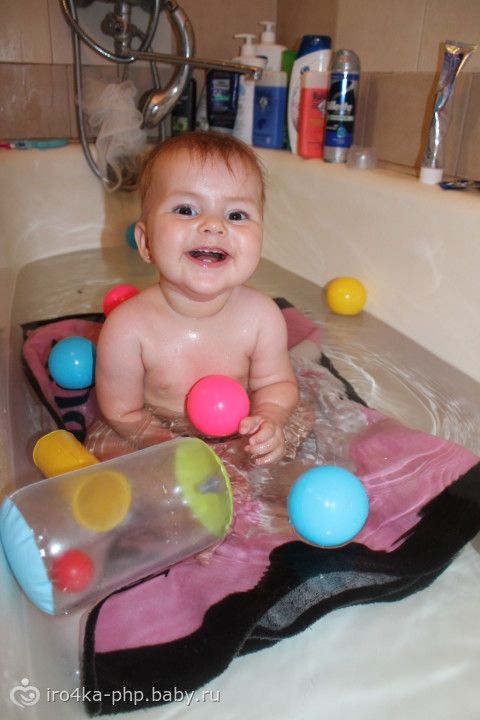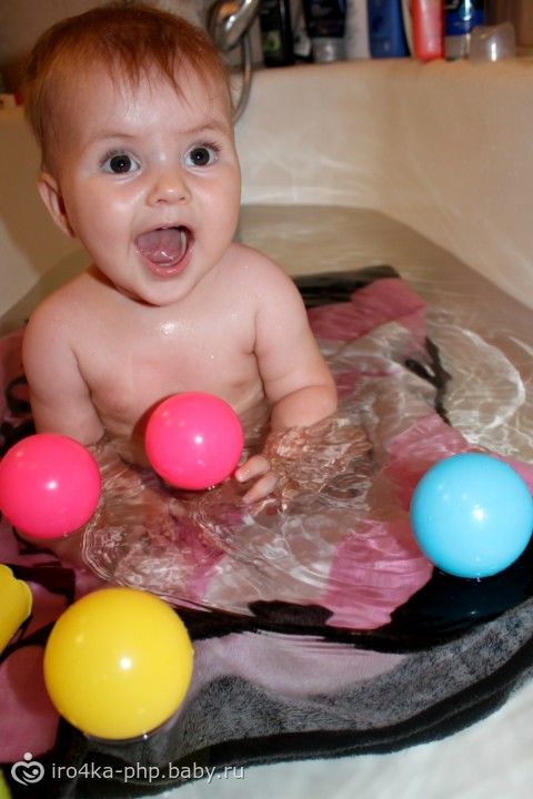 Уже пару дней купаемся без круга, сидя в ванной играемся игрушками, брызгаем водичкой… Воду мы обожаем...