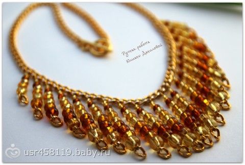 У подругиной дочи завтра день рождения, годик, вот решила и подруге сделать подарок. Решила подарить одну из своих работ, колье «ЯНТАРНЫЙ ЗАКАТ». Как думаете, нормальный подарок?