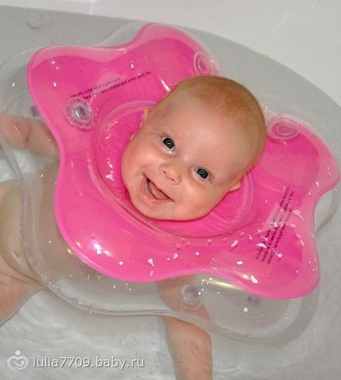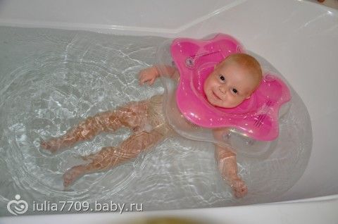 да, поздновато, но мы 1,5 месяца в деревне жили, там не было большой ванны. поэтому как приехали, сразу купили. на животе не очень удобно, т.к. он хочет в горизонтальном положении, а круг большой и приходится голову вверх сильно задирать, а т.к. шея у нас совсем коротенькая, почти нету ее, то тяжеловато ему)
