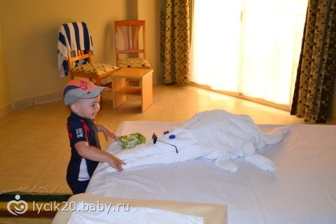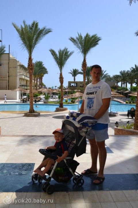 Как и в прошлый раз наш выбор пал на Египет, но теперь сыночек стал уже постарше и с ним было легче и интереснее!!! Конечно очень утомила дорога, до аэропорта (около 5 часов). Выехали мы рано утром и весь день добирались, приехали в отель только поздно вечером, в начале 12, весь путь Данюша бодрствовал и вел себя хорошо, но недодержался примерно 20 минут и уснул в автобусе. По приезду в отель нас очень быстро заселили, и отправили на ужин. Номер достался хороший с видом на территорию отеля и огромной кроватью, где мы спали втроем, т.к в детской кроватки, которая тоже была в номере, Данил сразу отказался спать!