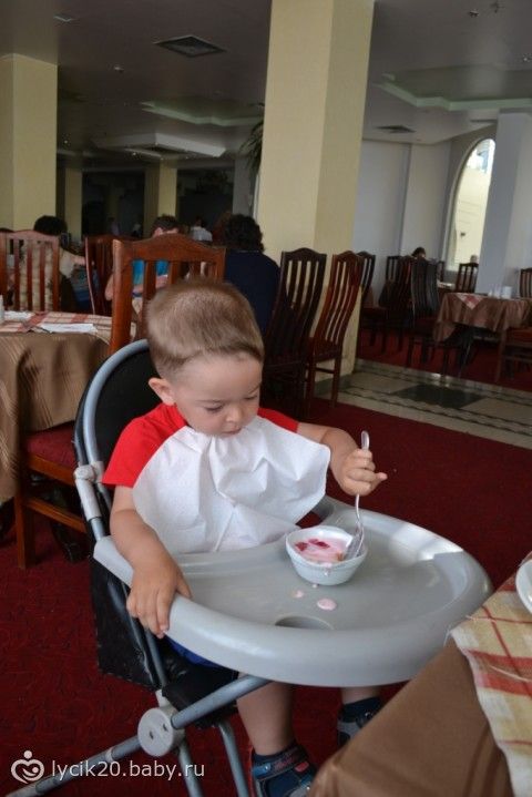 Из местного меню всегда находилось то, чем можно покормить ребенка, и все что брала с собой из еды, привезла обратно домой, только соки попил. С удовольствием ел фрукты: персики, арбузы, дыни!