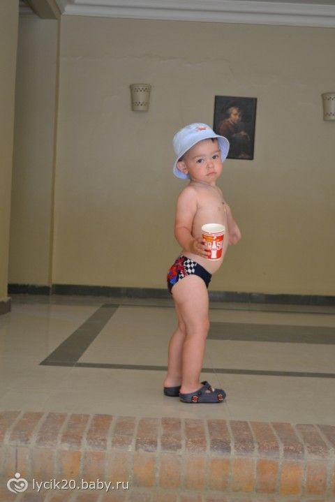 При виде воды, ребенок визжал от радости, море конечно особо удовольствия ему не принесло, только нравилось ловить там маленьких медуз и кидать их обратно в водичку, а вот бассейн. Особенно прыгать в воду с бортика к папе