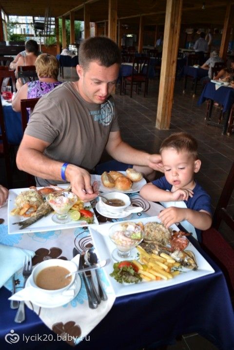 В ресторане с сыном постоянно заигрывали официанты, очень они ему понравились, всегда отдавал им пустые тарелки с нашего стола и сидел довольный как слон.