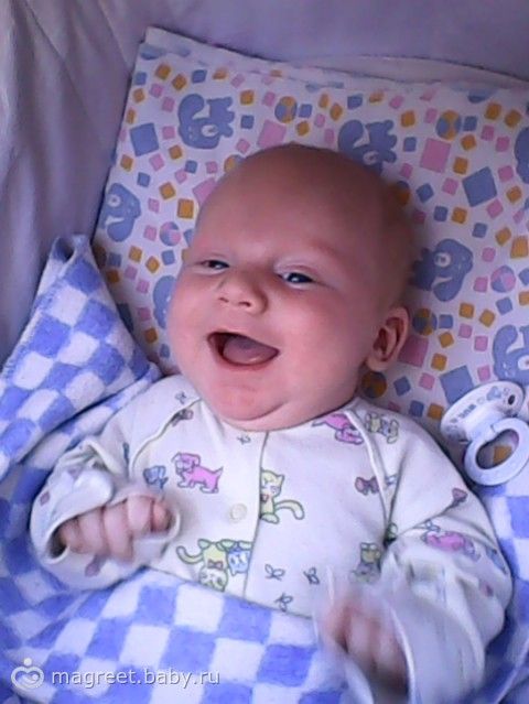 он постоянно улыбается и агукает, моя душа мурчит)))