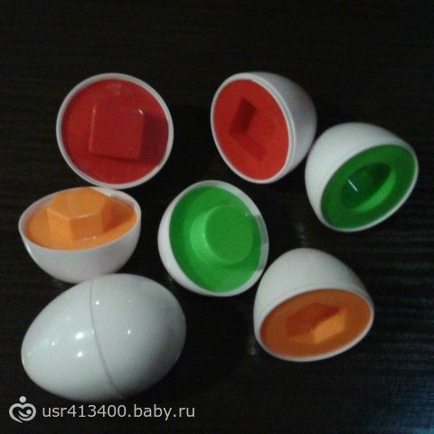 сын в восторге, крутит их, открывае, зачемто в горшок складывает, правда пока раскрыв с трудом подбирает вторую половинку. Ну в общем мы игрушкой довольны, тем более за 150р. Размером они как настоящие куриные яйца, хотя я почемуто думала, что они будут крохотными. В наборе 6 штучек.