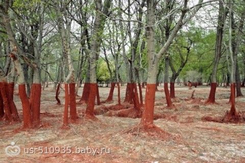 Лес после аварии на алюминиевом заводе в Венгрии, виден четкий след уровня красного шлама.