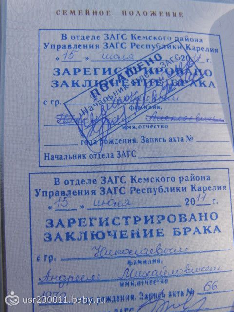 Ну и главный прикол всей свадьбы — чужой штамп в моем паспорте ![]()