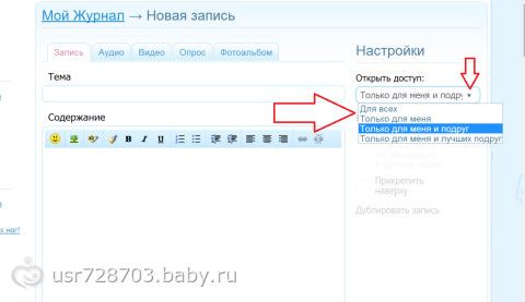 Расскажу, как закрыть пост. Когда открывается окно «Новая запись», справа есть надпись Настройки. Далее Открыть доступ- нажимаете на треугольничек, выпадет меню, можно выбрать: для всех, только для меня, только для подруг и только для лучших подруг.
