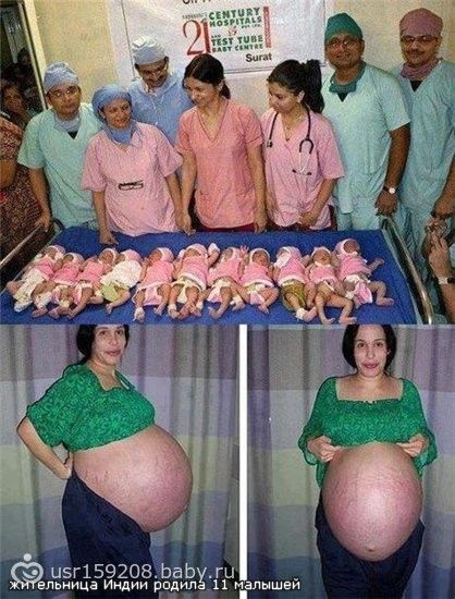 блин закидайте меня тухлыми яйцами ну не реально 11малявок поместить в этот живот,,, это они как там развивались,, мне интересно одно,, вот детячья пуповина приклепляется к матери ,, куда,,,,??? А если их 11они там вообще все на присосках