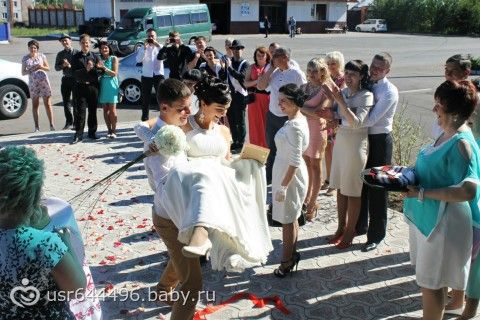 Видите там после фото «снятия фаты» она уже в платочке? )))) У них это было где-то средь торжества, видимо:)