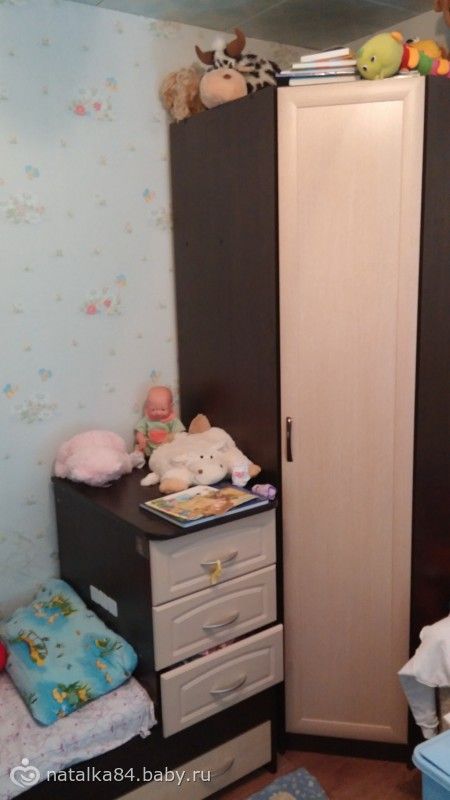 У нач в комнате такая же цветом мебель (венга и беленный дуб). А не подскажете у вас кроватка разборная?
