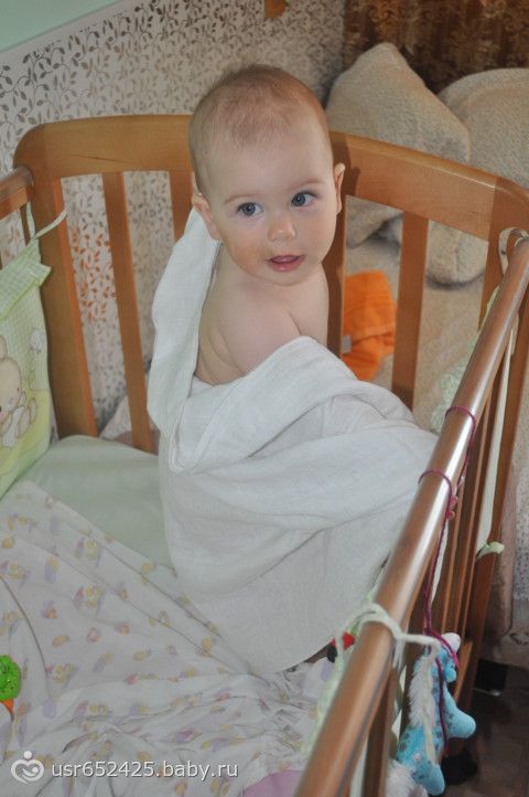 Очень любит играть с полотенцами, пеленками и пр.