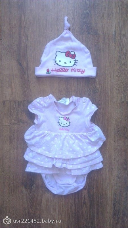Комплект Hello Kitty платьице-боди + шапочка, р. 62. Цена 150р.