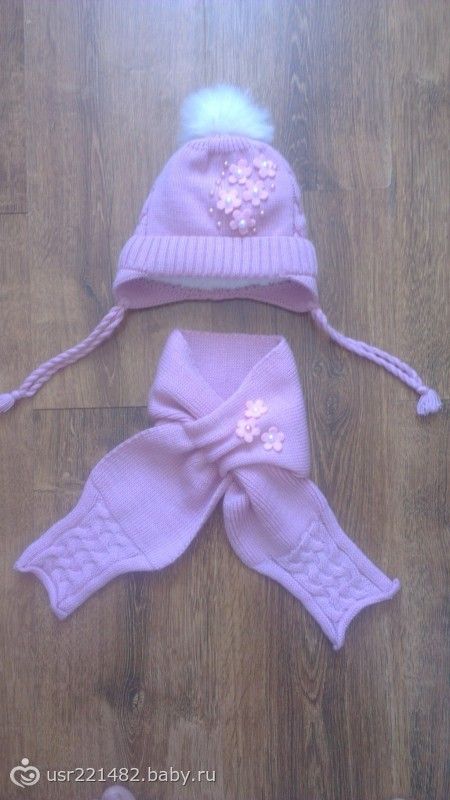 Комплект шапочка+шарф, внутри у шапочки мех иск. Цена 300р. На 6-12 мес. Надо мерить.