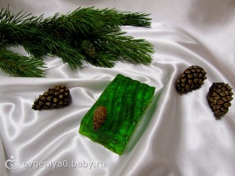 Хвойное мыло с эфирными маслами кедра, пихты и ели, а так же с натуральной хвоей.