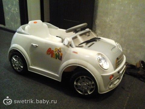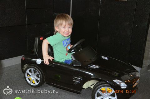 Тимур уже научился ездить, мало того, он притормаживает — педальку отпускает, чтобы проехать в дверной проем, рулем туда-сюда крутит чтобы вписаться… в общем я не ожидала что наш водитель так быстро освоит технику вождения :)))) машинка кайфовая, места в ней дофига, при повороте ключа звук заводящегося двигателя, сигнал настоящий, фары, на колесах резиновые накладки, зеркала складываются. в общем я очень довольна выбором.