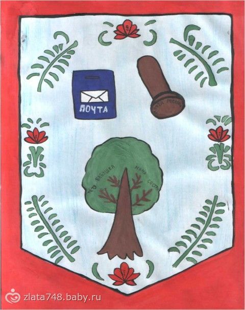 Вот и мы решили сделать герб всей семьей. Сначала выбрали форму, потом цвет. Затем подумали, что можно выделить выдающего в нем. Наверно самое главное, что практически все члены нашей семьи работают на почте — прабабушка, бабушка, мама. Начинали они с обычного почтальона. Мама работала в деревне почтальоном, разносила пенсию и газеты. Конечно, это тяжелый труд, ведь нужно много ходить и общаться с разными людьми. Сейчас почта не такая важная структура, как раньше, ведь все можно оплатить, прочитать через интернет. Раньше это было единственным способом общения через большие расстояния. Муж у меня работает наладчиком станков, поэтому в честь него мы нарисовали на гербе болтик. Дерево означает развитие и продолжение рода, и ассоциируется у нас с нашим сыном, который в дальнейшем продолжит линию и фамилию отца. Красный цвет мы выбрали не случайно, ведь сын и муж очень любят его, это цвет мужества. Ну от себя я добавила цветы, которые очень люблю. Они, как и моя любовь, объединяют всё, что есть на нашем гербе.