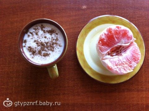 Перекус: Ряженка 1% с корицей, 1/2 грейпфрута.