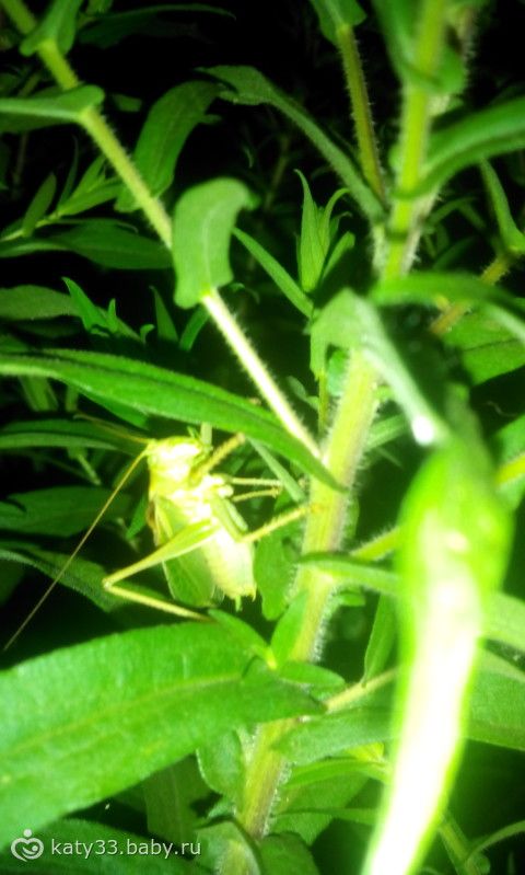 Прямо под окном орет сверчок, так громко, что аж звон в ушах стоит, окно не закрыть, жара. Взяла фонарик, пошла шариться в кусты, только подкралась, притих гаденыш, ну фиг ли, я притаилась, он обложался и заорал, тут я его и вычислила, здоровый такой, толстенький) сидит на моих цветах и баб завлекает зеленуха громкая. Кое как стряхнула, вцепился блин в мои цветы то, и палочкой давай его проганять, а он прыгает обратно на цветы. Короч я его надурила, он уцепился за палочку, а я его за забор, пускай там сходки устраивает. Теперь такая тишина только расслабилась коты начали где-то орать)