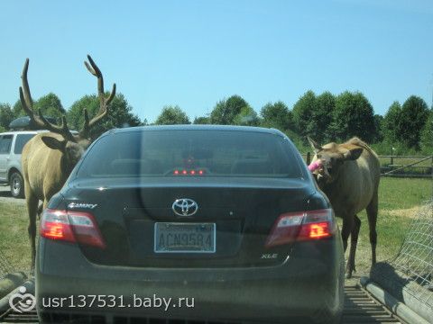 Drive-thru Zoo, я такое видела впервые, когда едешь по зоопарку на машине и можно кормить зверей, это целая умора, особенно с лосями, а вот когда зубр к тебе лезет — страшно, блин)) Много зверей и с малышами, контактный зоопарк и т.п. Обязательно вернёмся сюда с Колясиком.