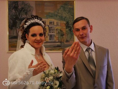 Наши кольца, вот такие. Ну и собственно мыУ нас свадьба была 14.12.12, в этот день у нас было 5 лет вместе. Потусили в ЗАГСе, потом не много покатались и в кафешке потом развлекались, тамада у нас зажигательная была!