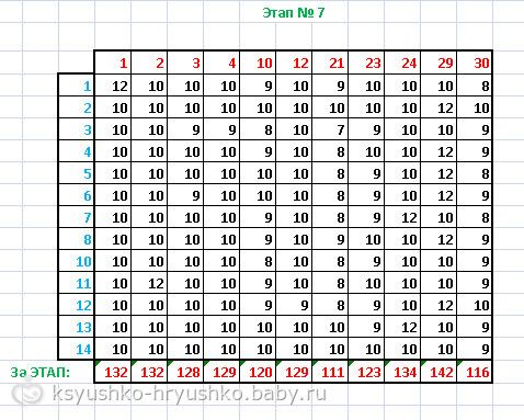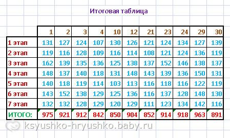 Таблица за этап (кликабельна!):