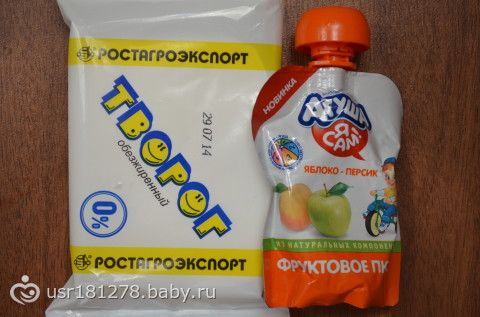 Полдник — творог с детским фруктовым пюре