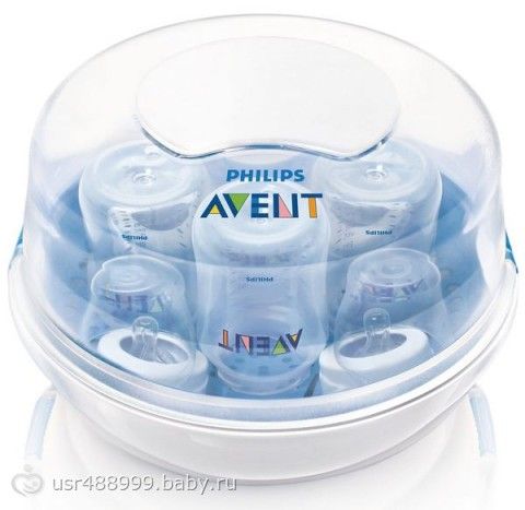 2. НОВЫЙ Стерилизатор для СВЧ-печки AVENT с подставкой для бутылочек и прихватом, рассчитанный на 4 бутылочки. При мощности микроволновки в 1200 стерилизация занимает всего 2 минуты! Нужно только заложить в стерилизатор чистые бутылочки, налить 200 мл воды, нажать 2 мин «старт» на микроволновке и всё готово. При меньшей мощности стерилизация займет от 2 до 8 минут. Ни разу не пользовались. 800 руб.