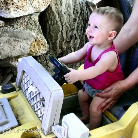 У свекров стоит машинка без аккумулятора. Златка, когда ее увидела, сразу стала тянуться и требоват, чтобы посадили в нее. Счастью не было предела, особенно когда руль крутила))