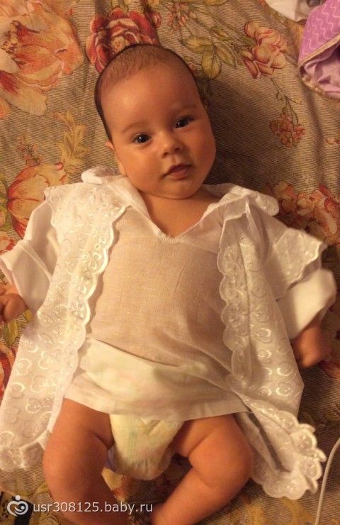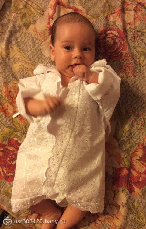 Можно и в рубашке длинной) Но я убедилась на опыте что с штанишками удобнее т.к. сначала мы купили сорочку, но она задиралась и все наше достоинство было на виду), кроме этого сорочка должна распахиваться т.к. священник мажет грудную клетку а у нас она одевалась через голову, да и не совсем бы было удобно одевать ее там ребенку!
