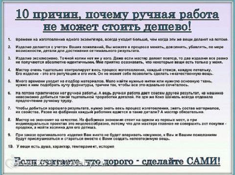 что тому, кто делает ручную работу, кроме затрат на материалы, время и т.д. еще хочется и покушать)))