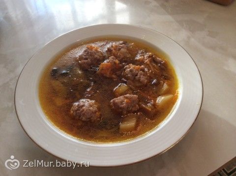 На первое я приготовила суп с грибами и фрикадельками)
