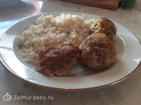 На второе я сделала котлетки в духовке с рисом) Раньше для меня в котлетах всегда самым неприятный моментом был процесс их жарки. И я нашла для себя идеальный вариант!))) Теперь я готовлю их в духовке!))) Получаются очень вкусные))) Мужа от них за уши не оторвать!)))