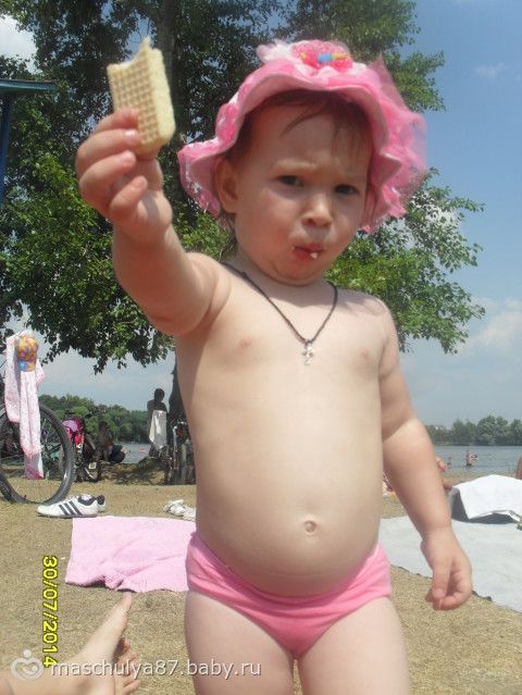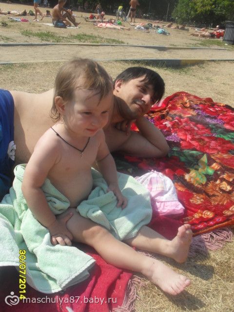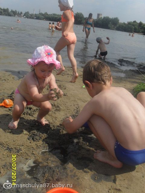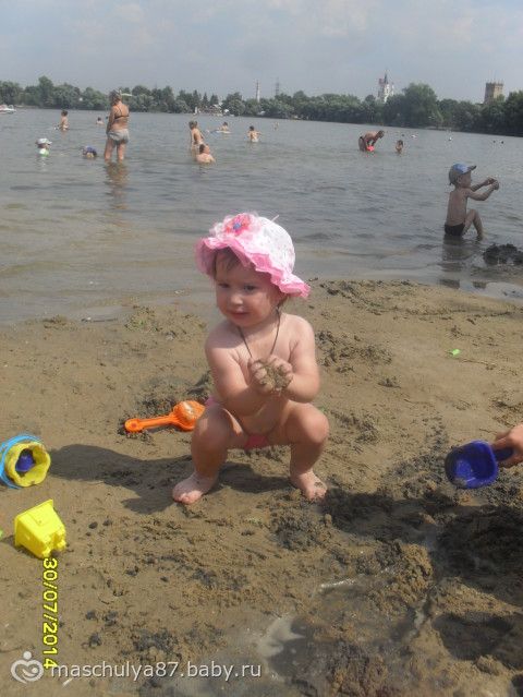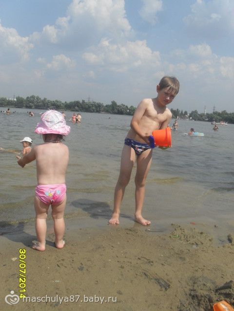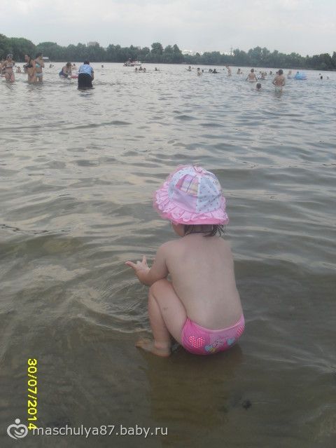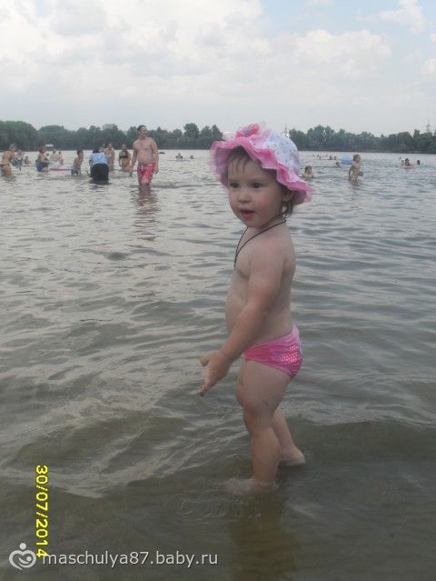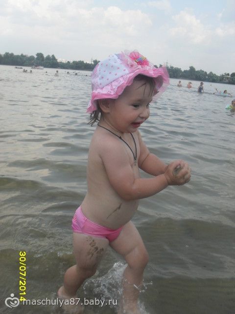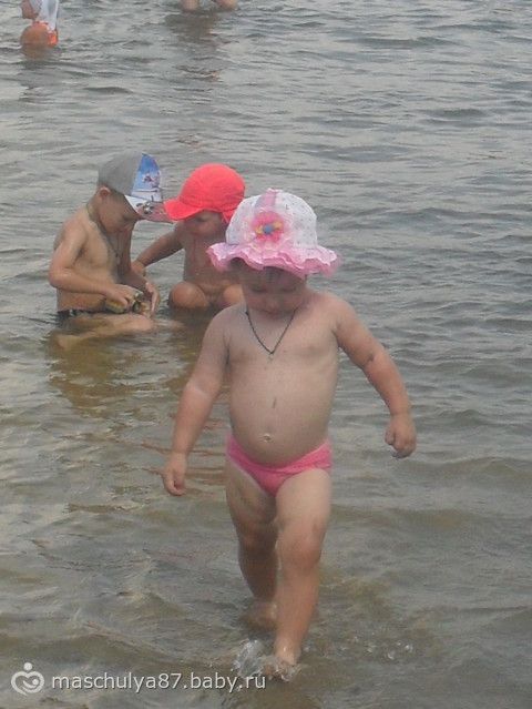 Катюня сначала боялась заходить в воду.Только по щиколотку, а под конец по пояс со мной зашла.