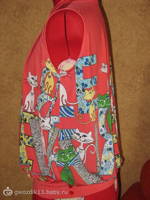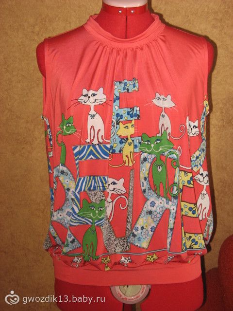 Кошачий топик, ткань шелковистый трикотаж, шился тяжело.