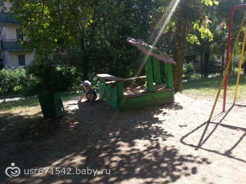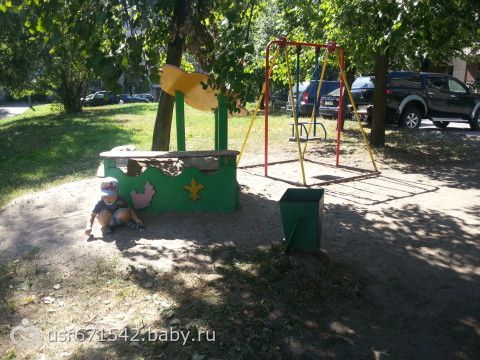 Сегодня обычный будний день, все на работу, а мы дома. Встали поздно, где то около 11, пока сделали утренние дела (завтрак, умывание, уборка комнаты и т.д) на прогулку вышли уже тоже поздновато в самую жару, ходили прятались по тенечкам и забрели вот на такую обычную мини площадку на которой и провели большую часть прогулки. И в тенечке и рядом удобная лавочка, где я сидела.