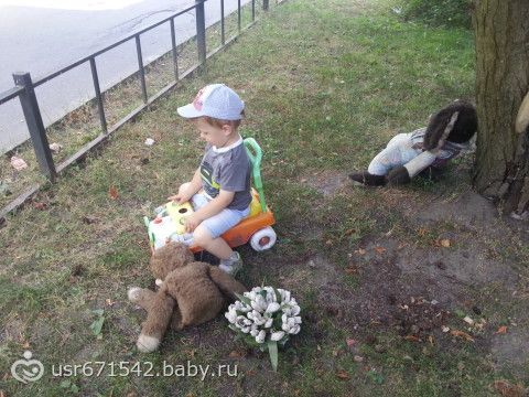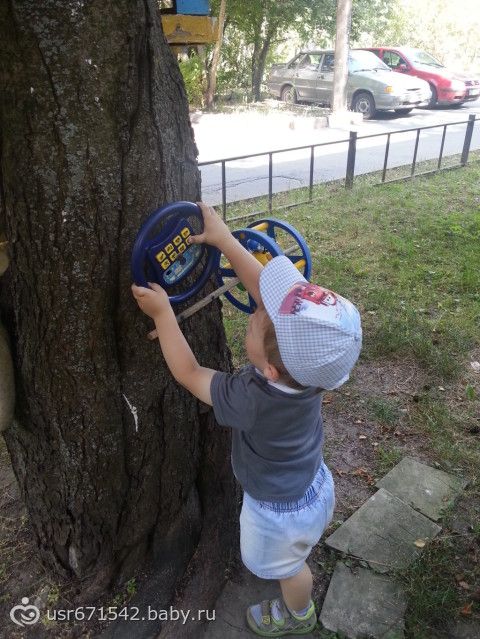 Дима посидел на машинке без колес, отдельно от нее порулил рулем, все поисследовали, но идти домой ни в какую не хотел. Потом я сказала ему пока и пошла за угол, тут же все бросил и побежал за мной)))