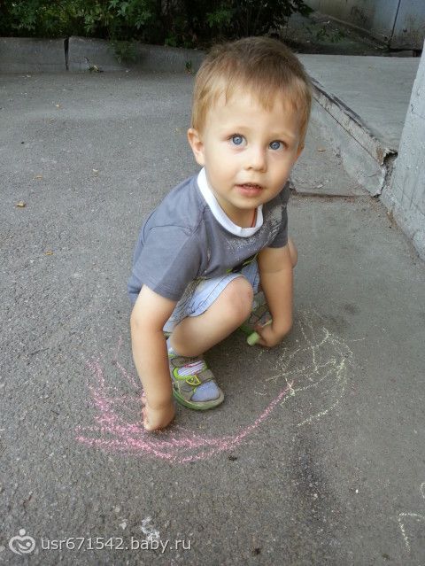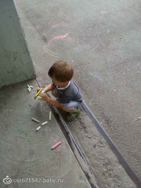 Уже около подъезда порисовал мелками и на асфальте и про себя любимого не забыл и пошли домой.