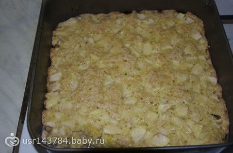 Положить нарезанные яблоки в форму, залить тестом и выпекать разогретой духовке в течение 35 до 40 минут