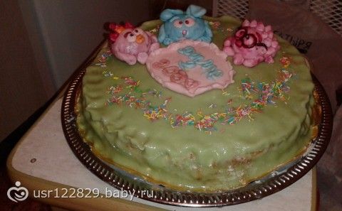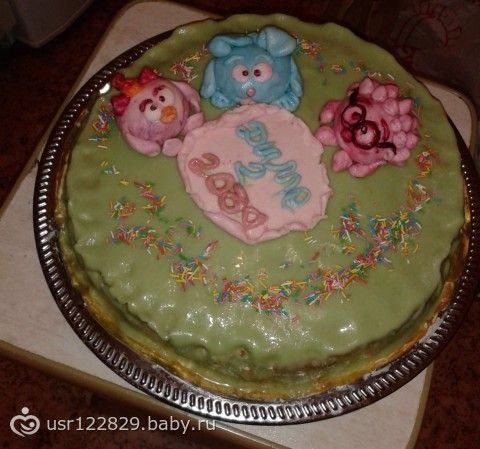 Сыну исполнилось 2 года сделала ему первый раз торт из мастики (с цветом намудрила, времени не было найти подходящий цвет). Ну как говорится первый блин комом))))