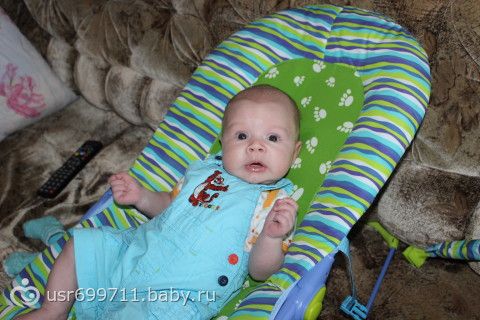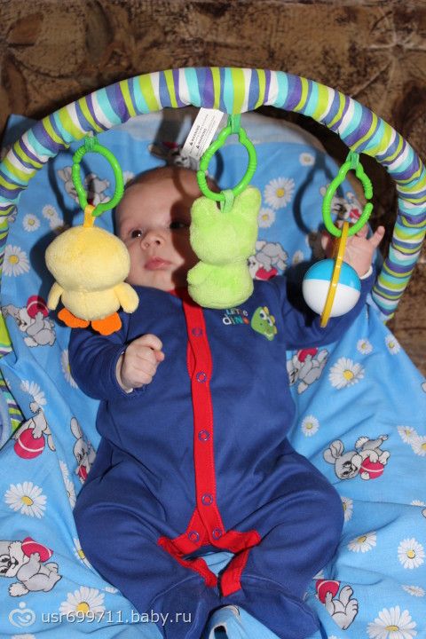 3. Очень любит лежать в шезлонге, разглядывает каждую игрушку очень долго) Ручками сам ударяет и лежит улыбается))