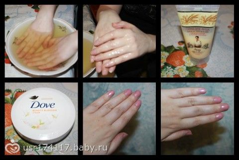 отдельно ванночку для рук не делала, принимала ванну с морской солью и скрабилась вся.соответственно рукам тоже досталось, потом нанесла маску для рук, затем обработала ноготки, покрыла укрепляющим средством