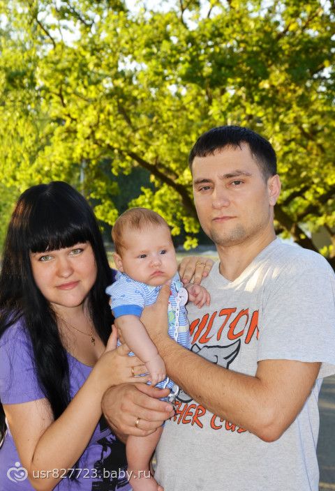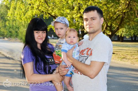 наконец уговорила мужа сфоткаться во дворе всей семьей=)) Старший сынок как всегда был против поэтому хмурое лицо на всех фото=((